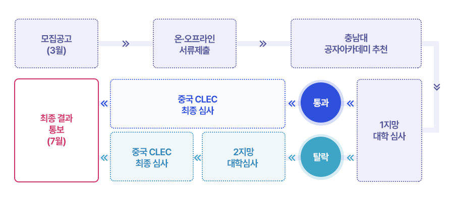 중국 중외어언교류합작중심(CLEC)의 장학프로그램으로, 중국 내 130여개 대학과 협력하여 공자아카데미 학생들에게 주국 현지에서 중국문화와 중국어를 학습할 수 있는 기회를 제공하는 장학프로그램